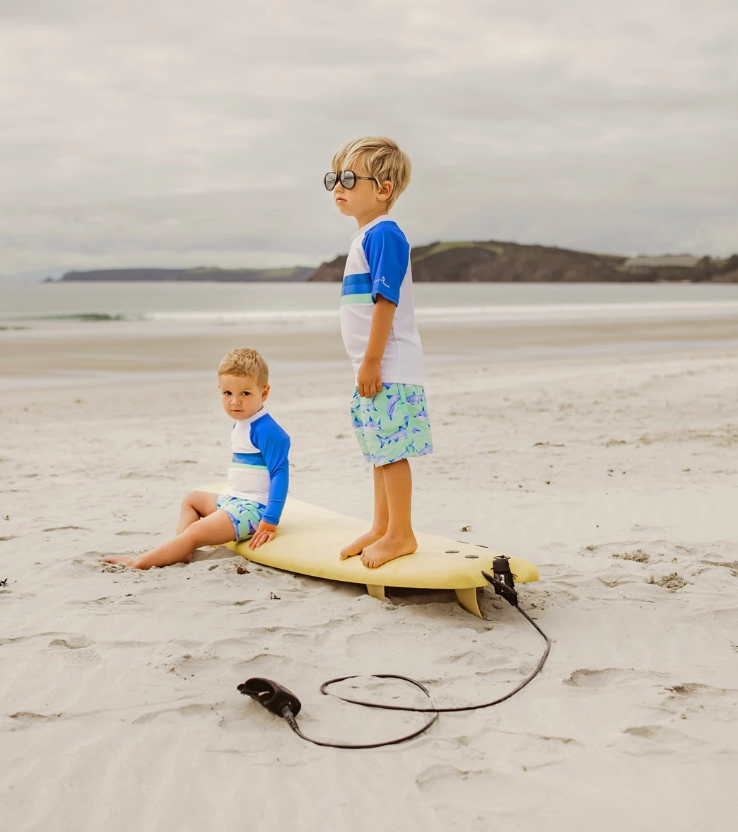 Deep sea diving and exploring are sublime in The Minty Shark Volley Board Shorts. Made from quick drying UPF 50+ Sun protective fabric. You’ll be ready to hit the ocean asap!Soft elastic waistband with workable draw string.