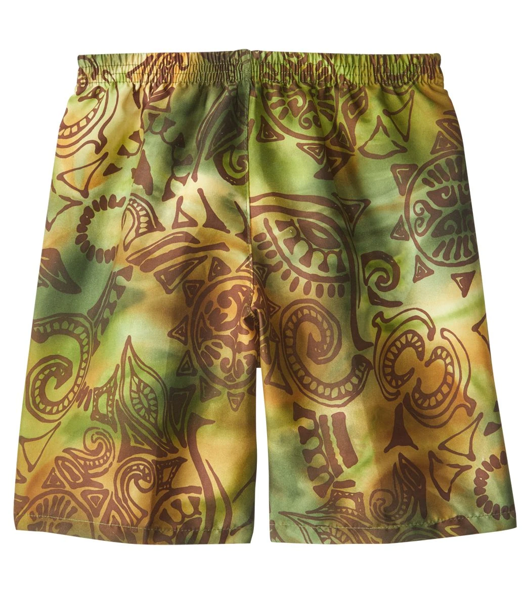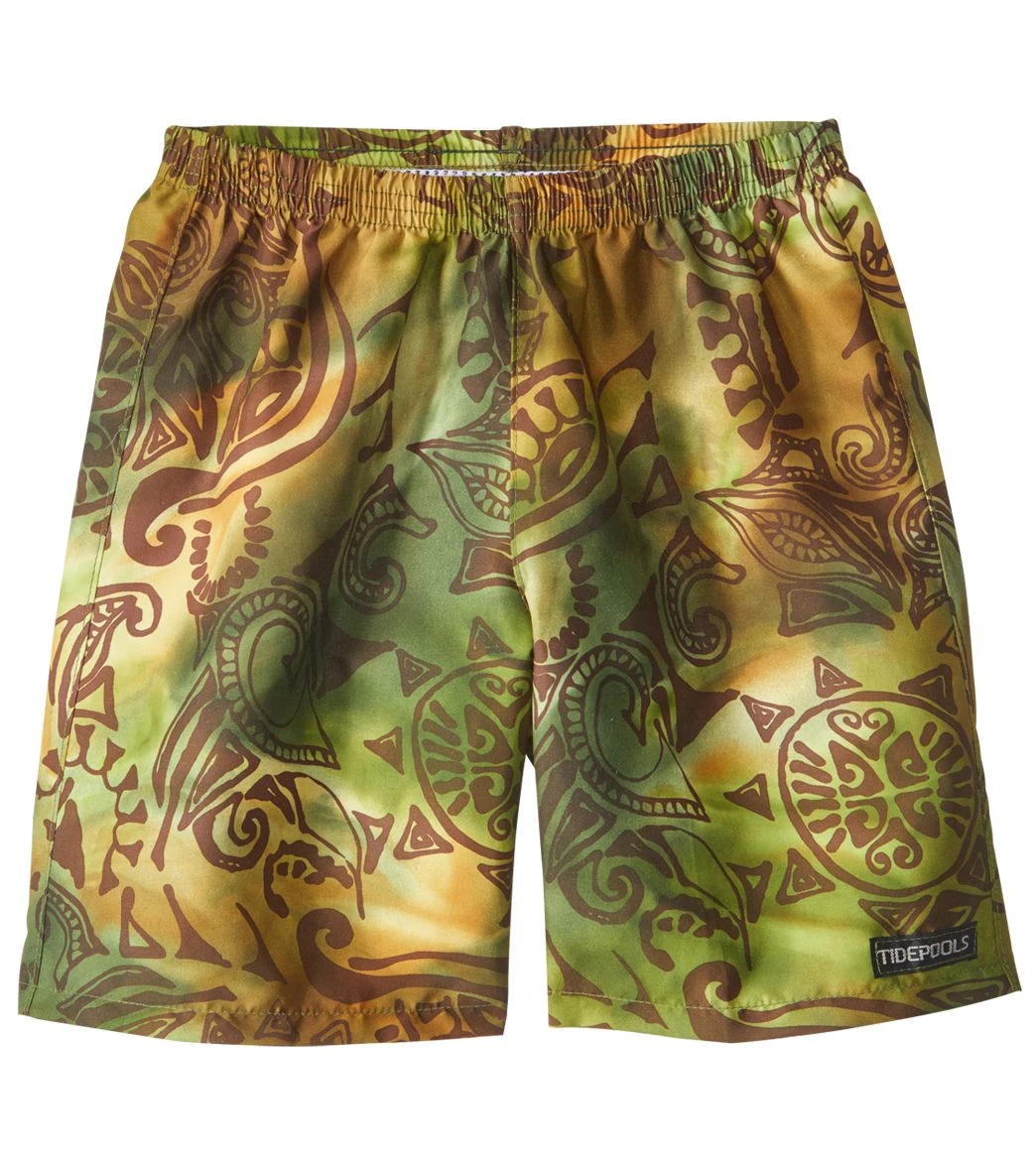 Give him shorts made for splashing around. The Tidepools Boys Tonga Wonga Long Trunks feature a comfortable elastic waist and provide great sun protection. Their longer length ensures he gets extra coverage.