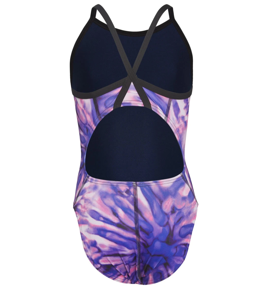 The Sporti HydroLast Spacey Thin Strap One Piece Swimsuit Youth (22-28) keeps you locked in and ready to train hard for the swim season.