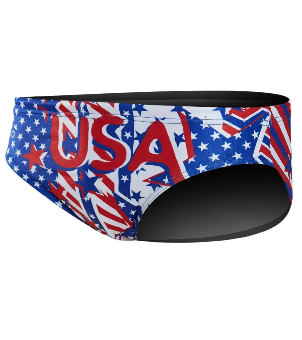 The Tubor Men’s Flexie Water Polo Brief are vibrant and fun, you can be sure that the colors will not fade. Show your pride with this USA logo!