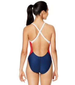 Show your love for swimming in the TYR Women’s Cascading TYR Print Cutoutfit One Piece Swimsuit. Has thin straps and minimal back coverage for increased range of motion.